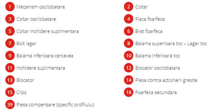 - Elementul de cercevea se fixeaza pe mecanism iar cel de toc este reglabil pe inaltime cu un stift